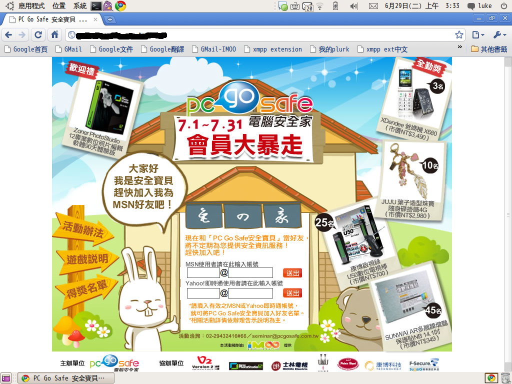 2010/7/1 活動熱烈展開,詳情將另行公佈 ( 請參考活動網址 http://www.pcgosafe.com.tw/join/ )
